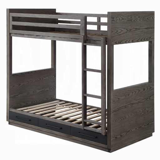 ACME Haley II Twin/Full Bunk Bed w/2 Drawers, Gray (1Set/2Ctn), 80" x 58" x 65"H, 181lbs. This Haley II collection offers classical bunk bed style....