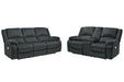 - Sofa and loveseat are dual-sided recliners; sofa’s middle seat remains stationary