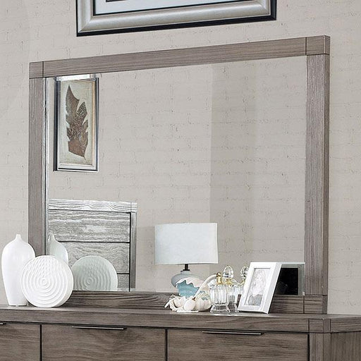 AVEIRO Rustic Natural Tone Mirror, 42"W X 37"H X 2"D, 54.34lbs. Visually appealing with urban undertones, this wooden collection is perfect for ope...