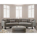SARIN Warm Gray Sectional, 129 1/2"L X 37 3/8"W X 32 1/4"H, 207lbs. Create a luxurious and sophisticated living room with this uniquely shaped sectional . Curved for design and comfort, the sectional features a tufted back paired with sloped armrests, all for a modern appeal. Matching accent pillows, available in two different sizes, add a charming touch. Features: Contemporary Style Rounded Design Sloped-Style Arms Linen-like Fabric Optional Ottoman Available Pillows Included Solid Wood, Others Warm Gray