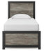 This bedroom package evokes the tranquil vibe you long for in your dream destination. Its two-tone textured look marries a rustic gray finish and a matte black finish over replicated oak grain for neutral appeal. Both functional and versatile, its roomy drawers with large-scale handles offer easy access to hidden storage for cozy sweaters, casual tees and so much more.