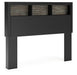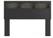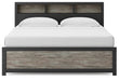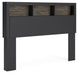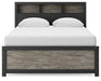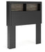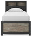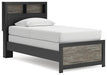 Two-toned with a matte black finish and a rustic warm gray finish with replicated oak grain and authentic touch. Cases feature a framed front and pilasters. Large black colored handles. Side roller glides for smooth operating drawers. Bookcase headboard (165,169) features warm LED lighting, offering three levels of brightness controlled by a touch button for serene bedtime ambiance. Bookcase headboards (63,85,65,69,165,169) can attach to a bolt-on metal bed frame B100-21, B100-31 or B100-66, respectively. Bookcase headboard (63,85,65,69,165,169) can attach to footboards (52,84,54,56) respectively. Panel rails (83,86,96,97) require the use of a box spring. Mirror (36) has the versatility to be mounted on dresser or wall vertically and horizontally. Safety is a top priority, clothing storage units are designed to meet the most current standard for stability, ASTM F 2057 (ASTM International). Drawers extend out to accommodate maximum access to drawer interior while maintaining safety.